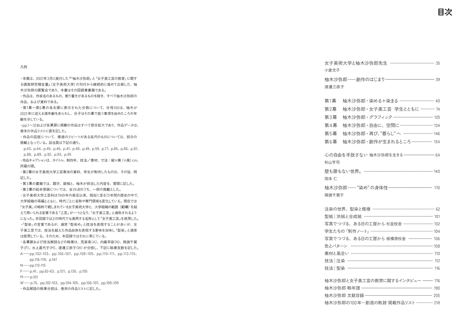 Sayaro Yuzuki as a dyer, craftsman, educator, designer, artist, and expressor. This exhibition catalog is comprised of the artist's multifaceted faces (artists), the expressions (works) created by fusing each element, and the creative process (education) of feminine beauty. While focusing on the characteristic themes of Yuzuki's works, we explore the diverse way of life and production that spans 100 years of his life, as well as the charm that continues to be even more dynamic today.