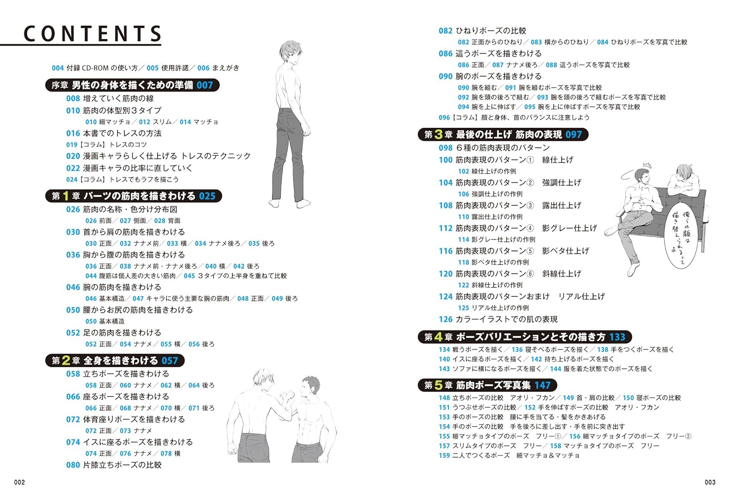 In this book, based on the basic muscle structure, we will divide the body into three body types: slim, thin, macho, and macho, and explain the characteristics of each body and the points for drawing them.