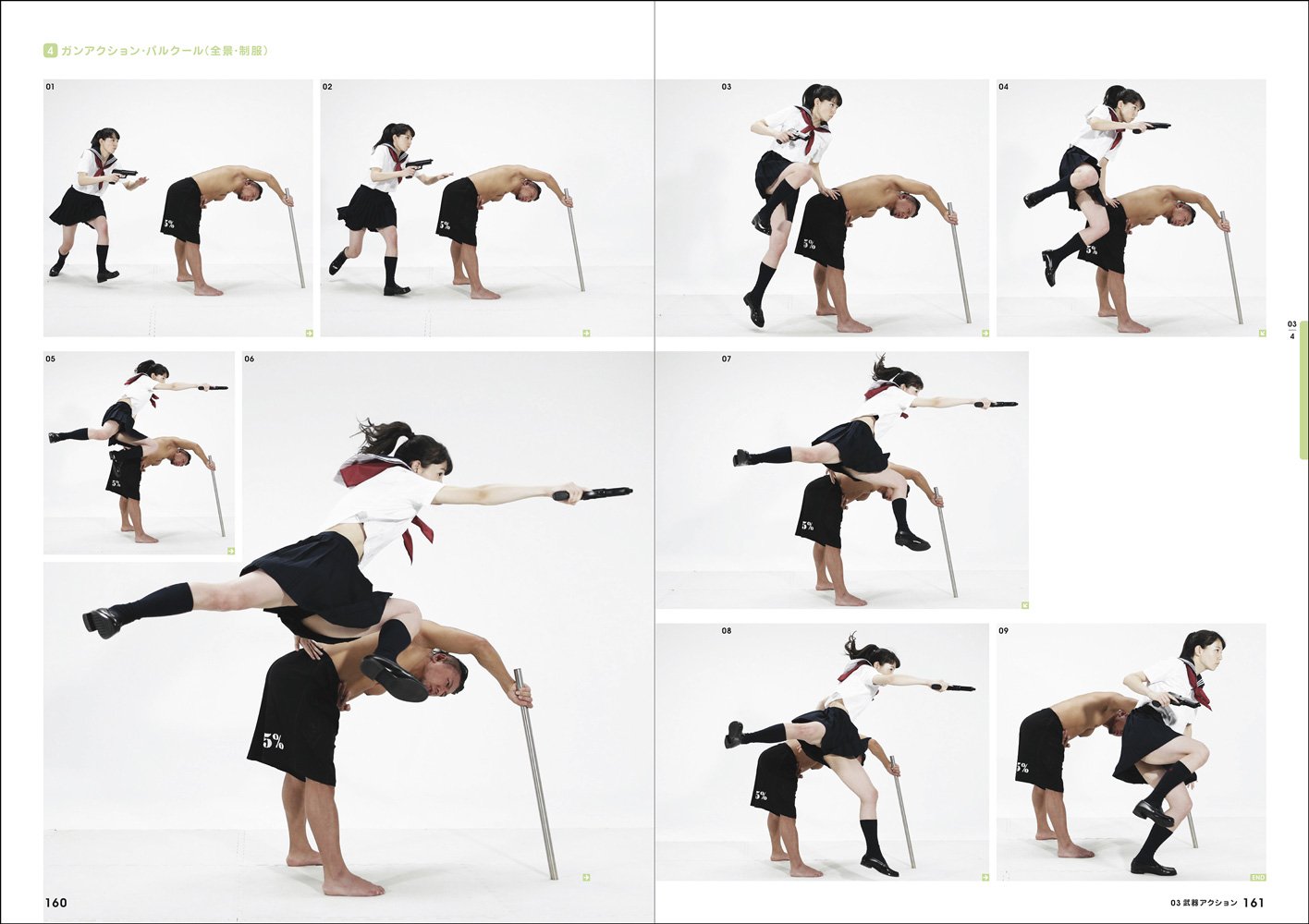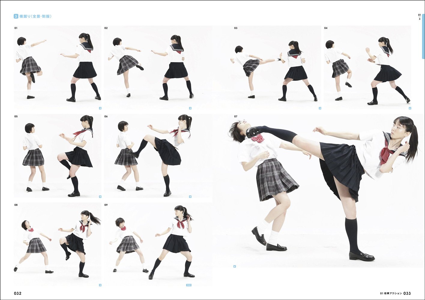 A collection of instantaneous action poses by a full-fledged action director, a karate expert girl, an action actor, and a macho man. High school girls in sailor uniforms and blazers perform intense fighting actions, jumping techniques, gun actions, etc.! They perform the same actions in uniforms and swimsuits, and not only do they notice the wrinkles in their clothes, the fluttering of their skirts, and the visibility of their underwear. You can clearly see the movements of muscles and the whole body that you couldn't see before.