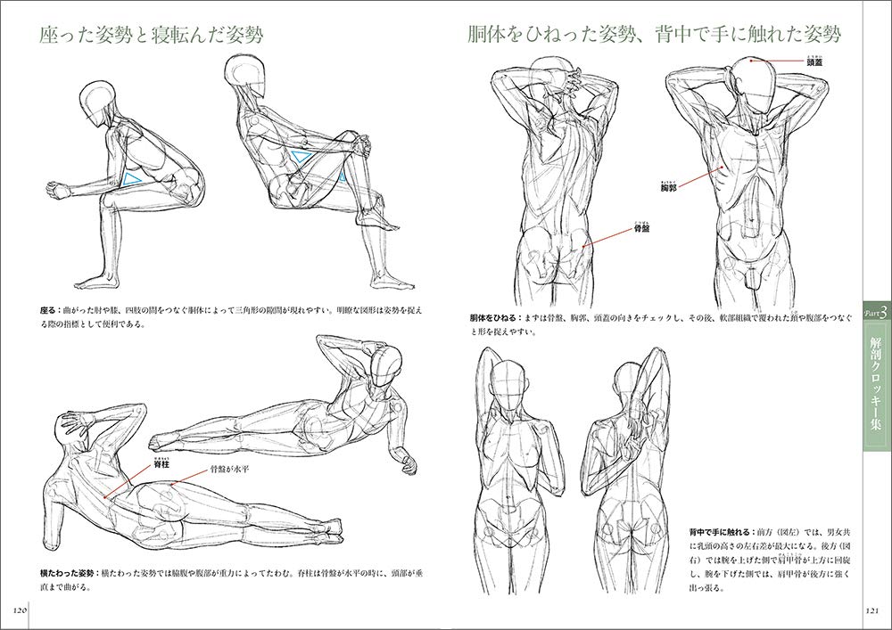 In PART 3, we introduced practice methods and perspectives that can apply anatomy to sketching various poses. Once you learn the practice method in this book, you will be able to practice with the art anatomy books you already have, and you will be able to significantly reduce the amount of time you spend moving your hands blindly when drawing the diagram below.