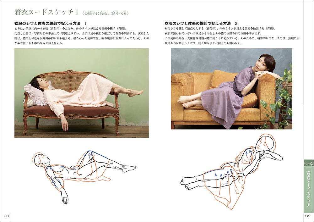 PART 4 ??is an advanced version of PART 3, and introduces how to infer and draw nudes based on clothing. This method allows you to check the internal structure of clothed figures, character expressions, etc., and helps you develop the ability to infer what's inside from the outside, which is one of the important goals for learning art anatomy. Can be done.