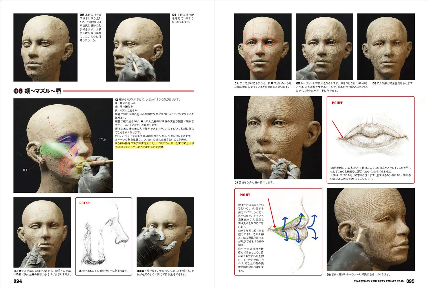 We have completely revised "Anatomy Sculpting'', which thoroughly lectures on the sculpting of men's skeletons and muscles, women's bodies, and children and the elderly. Create and thoroughly explain the face and head of a human woman. This is a complete version with a significantly increased page volume.