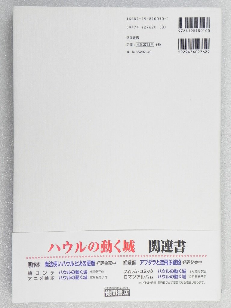 A collection of settings, art, and techniques for Studio Ghibli's "Howl's Moving Castle'' released in 2004. Contains a collection of Hayao Miyazaki image boards, art boards, backgrounds, character settings, image boards, and completed scripts.