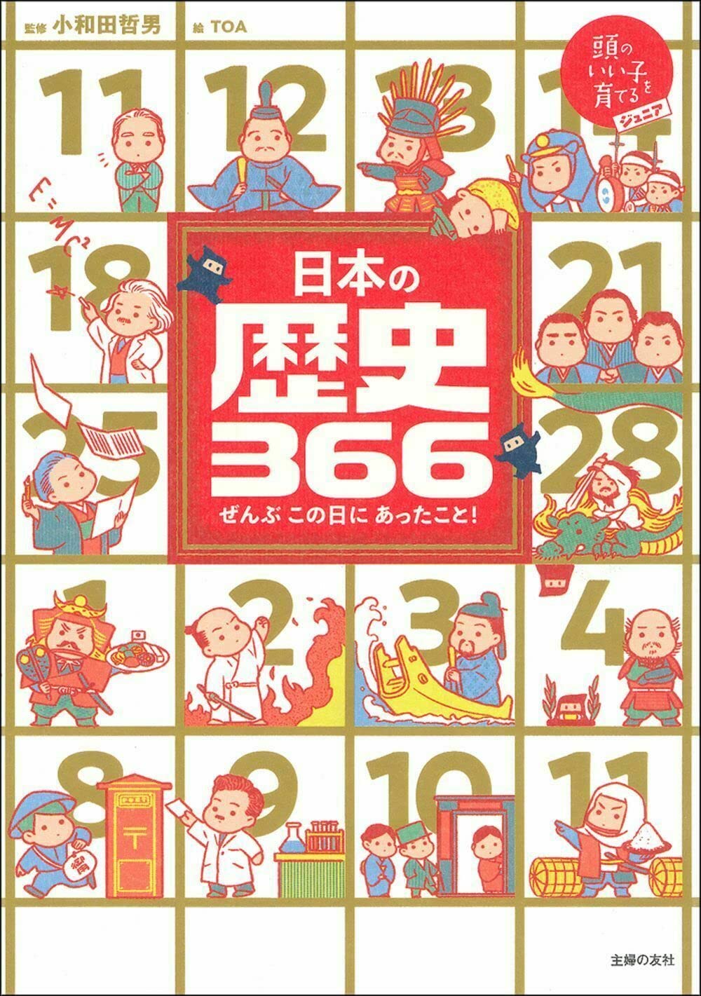 A new line for elementary school students is now available from the popular series "Raising Smart Children,'' which has sold over 1.3 million copies. This is a history book that introduces 366 days worth of events, one page per day, for each date. Incorporating plenty of fun elements such as one-panel comics, quizzes, and spotting the differences, you can enjoy learning about Japanese history that elementary school students should know, so history will become familiar to you and you'll fall in love with it. You can learn the basics of history just by looking at the illustrations. The project is supervised by Tetsuo Owada, who is in charge of historical research for NHK's historical drama "Kirin ga Kuru.'' We have selected historical figures and events that are historically and educationally important.