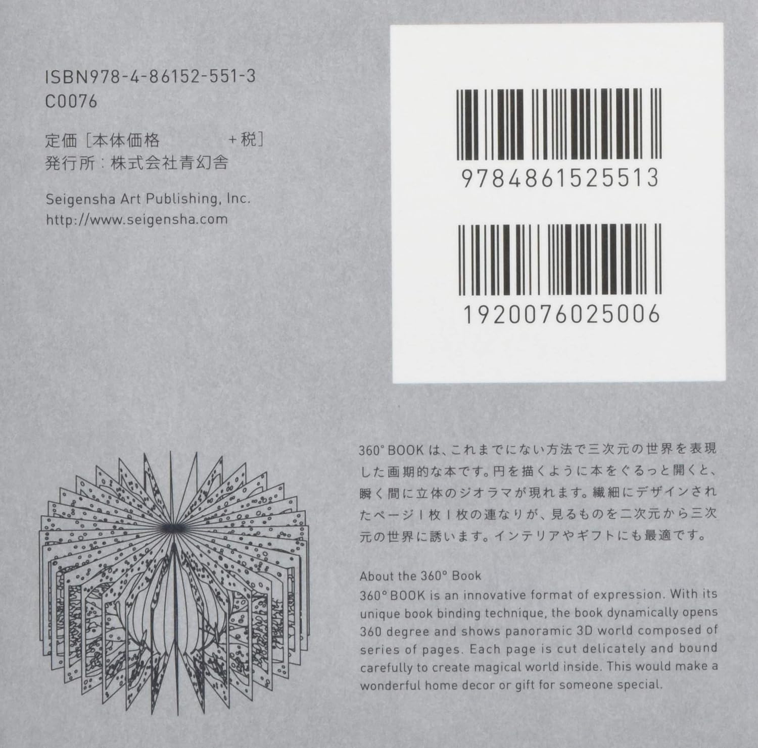 The 360??BOOK is a new revolutionary format that enables the artist to create a panoramic three-dimensional world. The book opens and expands into a dynamic circle of pages. Each page is finely crafted works of art, drawing the viewer from a scene of two dimensions to a three-dimensional world/diorama.