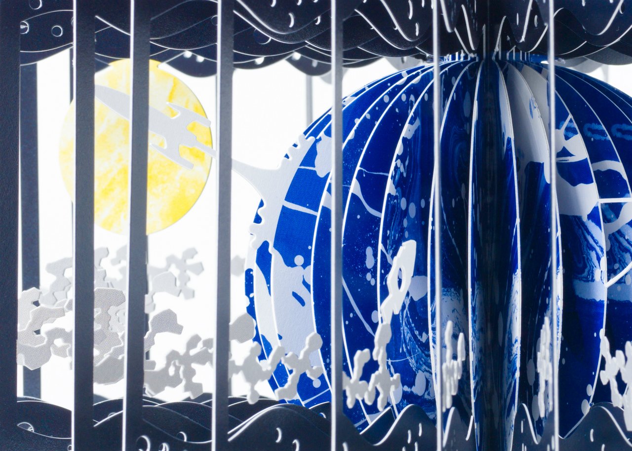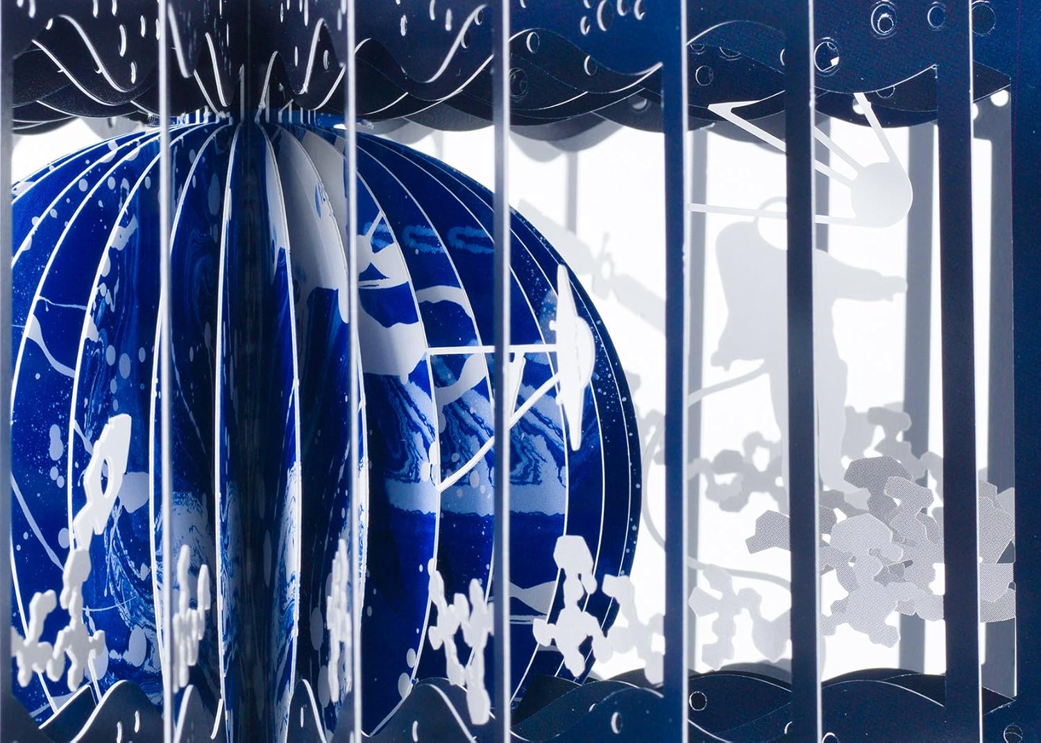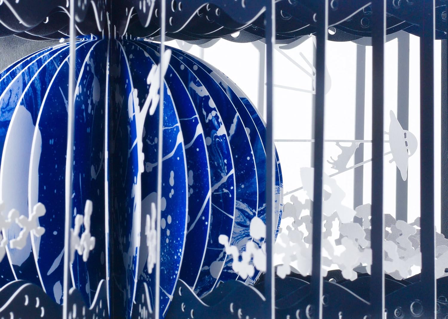 The series of delicately designed pages invites the viewer from a two-dimensional to a three-dimensional world.